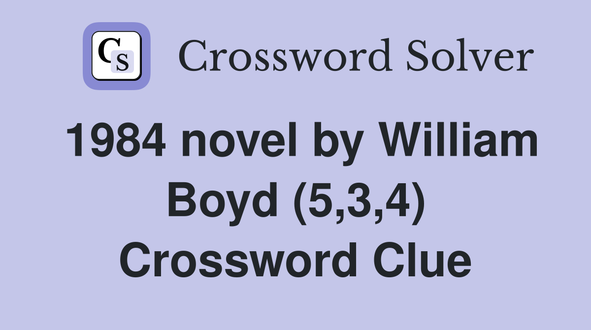 1984 novel by William Boyd (5 3 4) Crossword Clue Answers Crossword