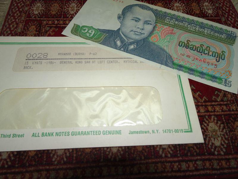 1986 Myanmar Burma 15 Kyats Banknote General Aung San Left Center