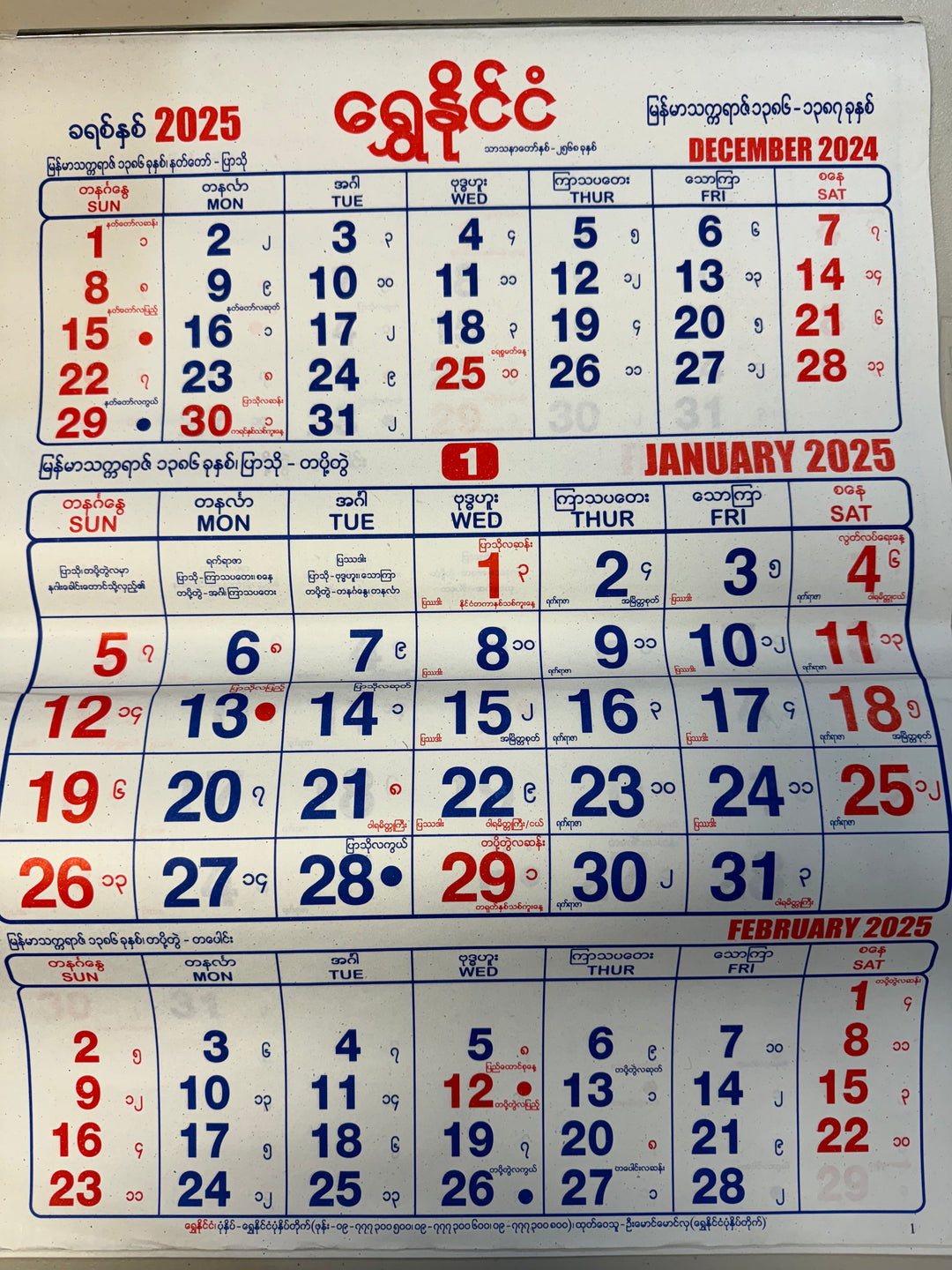 2025 Myanmar Calendar ( 3 လ မြင် မြန် မာ ပြ က္ခ ဒိန်) Myanmar Food USA