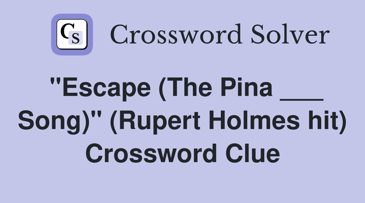 quot Escape (The Pina Song) quot (Rupert Holmes hit) Crossword Clue