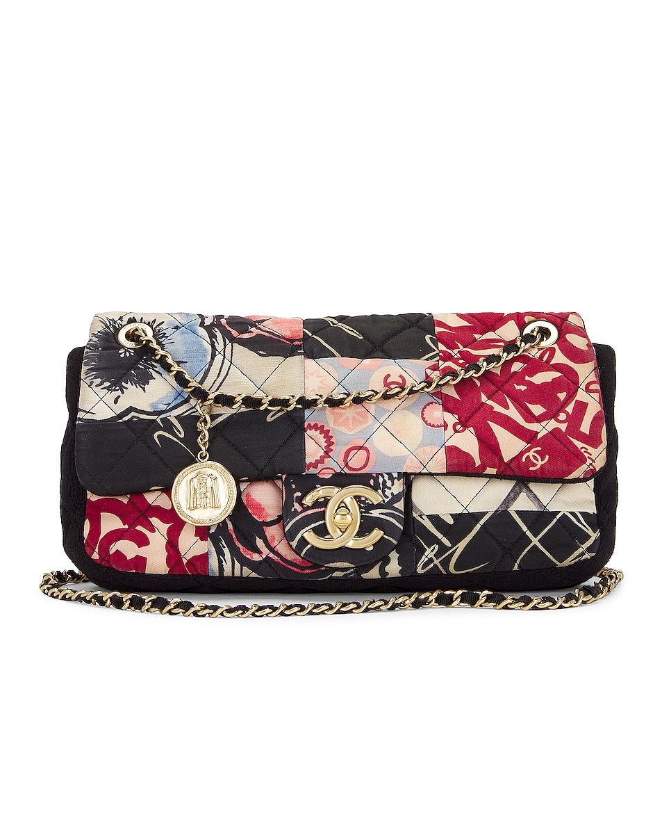 FWRD Renew Chanel 19th Series Quilted Cotton with Chain Shoulder Bag in