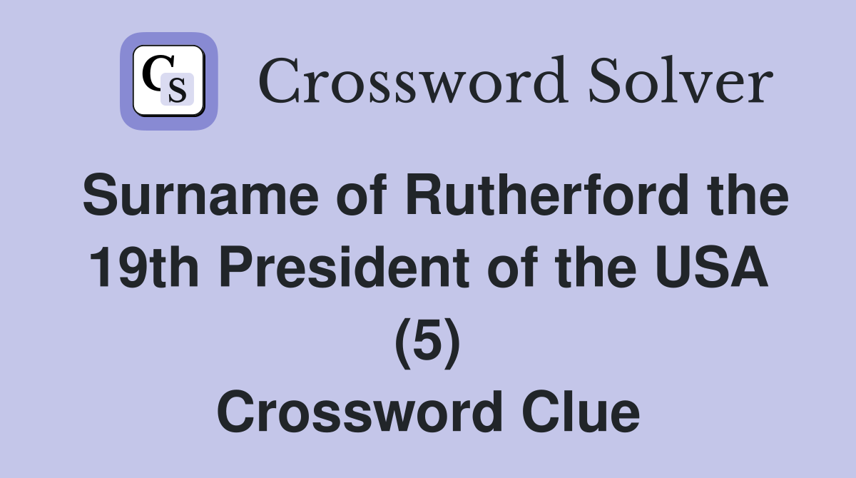 Surname of Rutherford the 19th President of the USA (5) Crossword