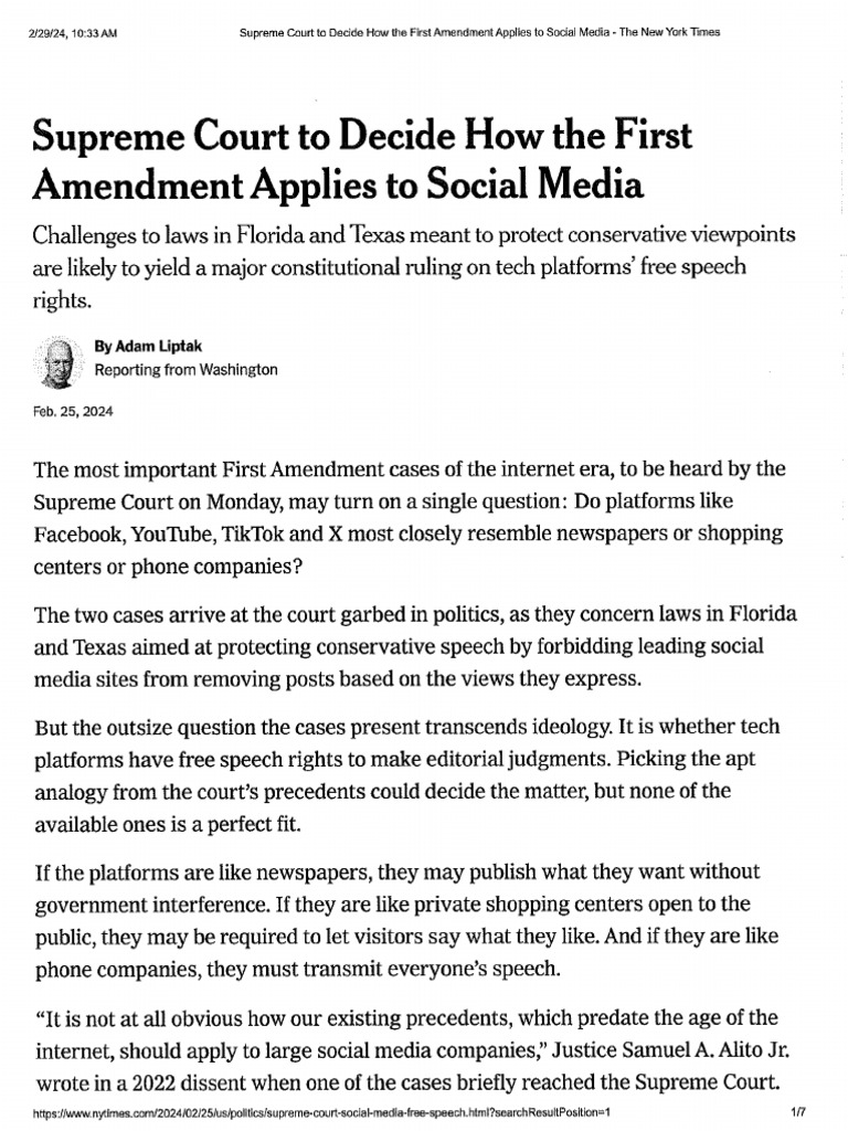 Social Media First Amendment SUPREME COURT Case PDF