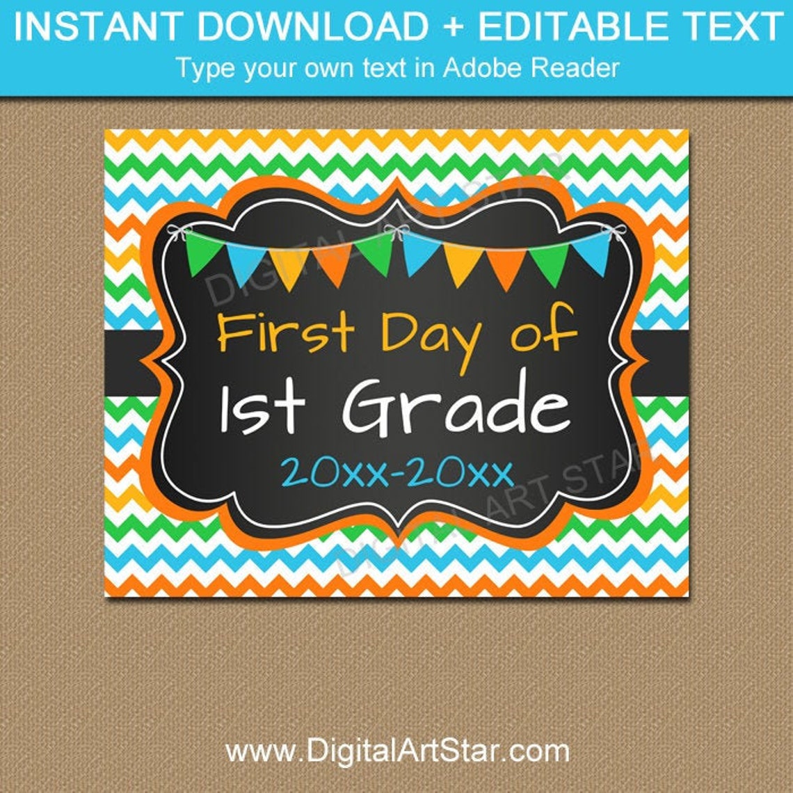 Editable First Day of 1st Grade Sign Printable First Day of 1st Grade