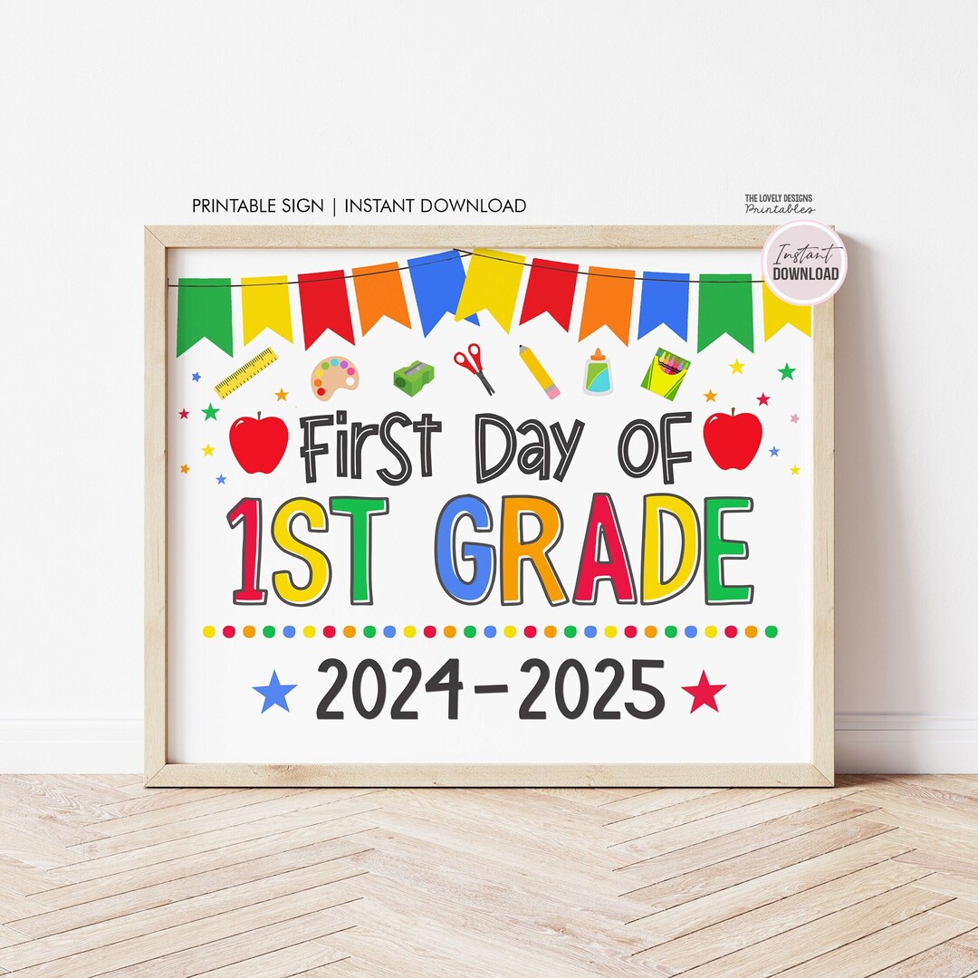First Day of 1st Grade Sign Printable INSTANT DOWNLOAD Photo Prop First