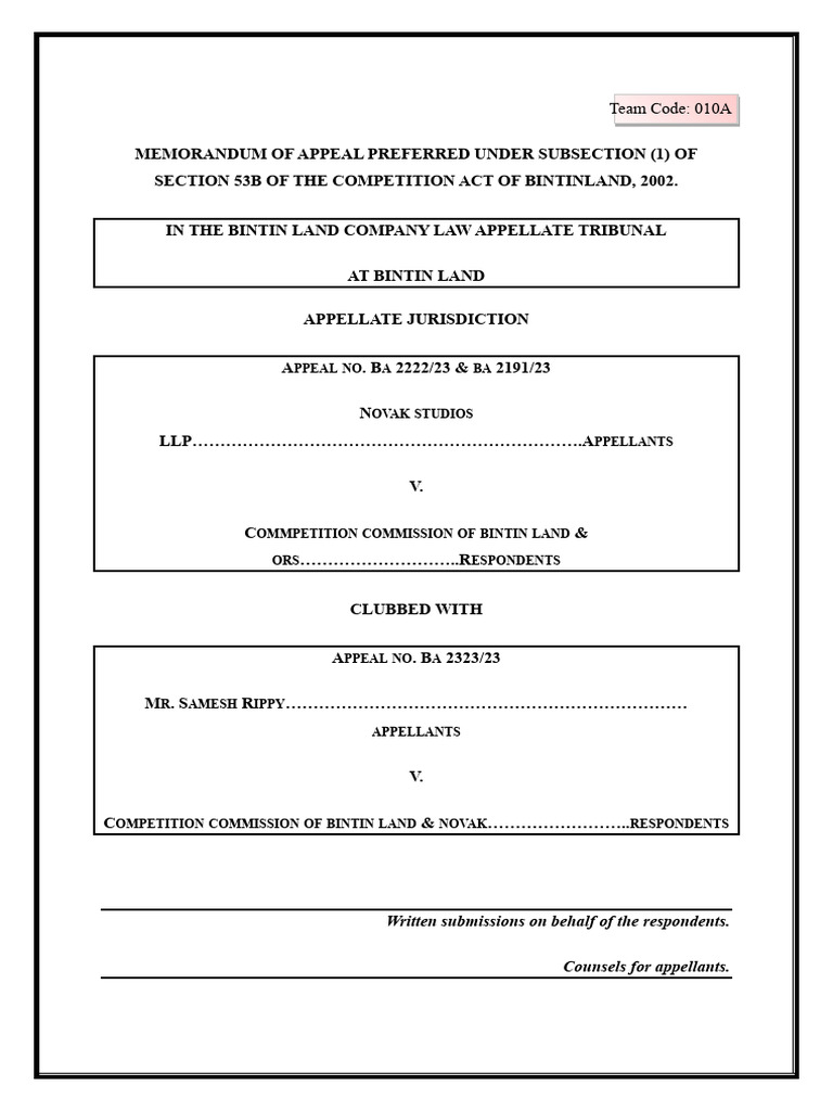 Cover Page Template PDF Appeal Appellate Court