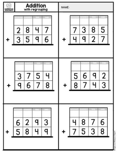 2nd Grade Math Worksheets Place Value Addition Regrouping 3