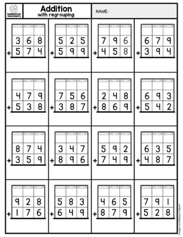 3 Digit Addition worksheets WITH Regrouping by Miss Penny #39 s Teachings