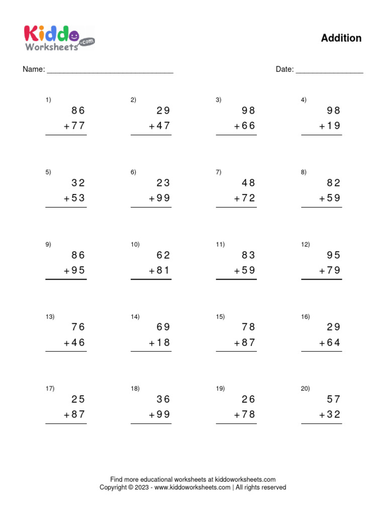 Free Printable 2 Digit Addition Worksheet Worksheet kiddoworksheets