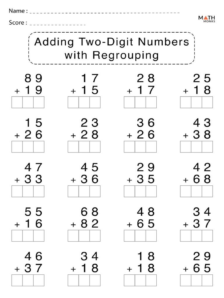 2 Digit Addition With Regrouping Pdf : Two Digit Addition Worksheets