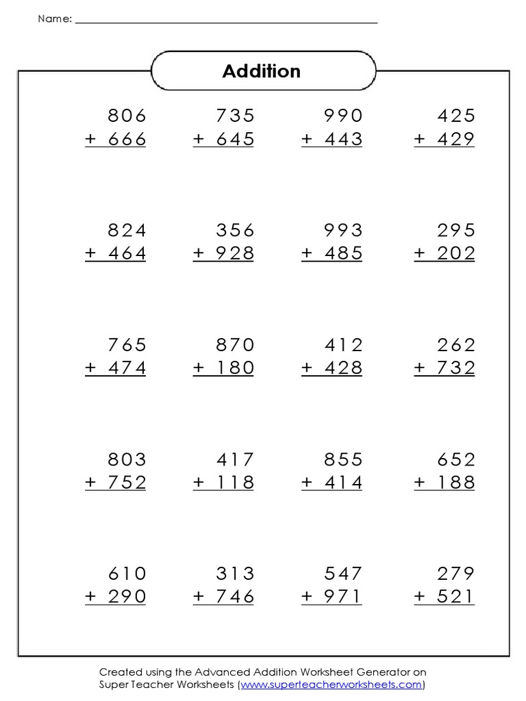 Free Addition Practice Worksheets 3 Digit With Regrouping