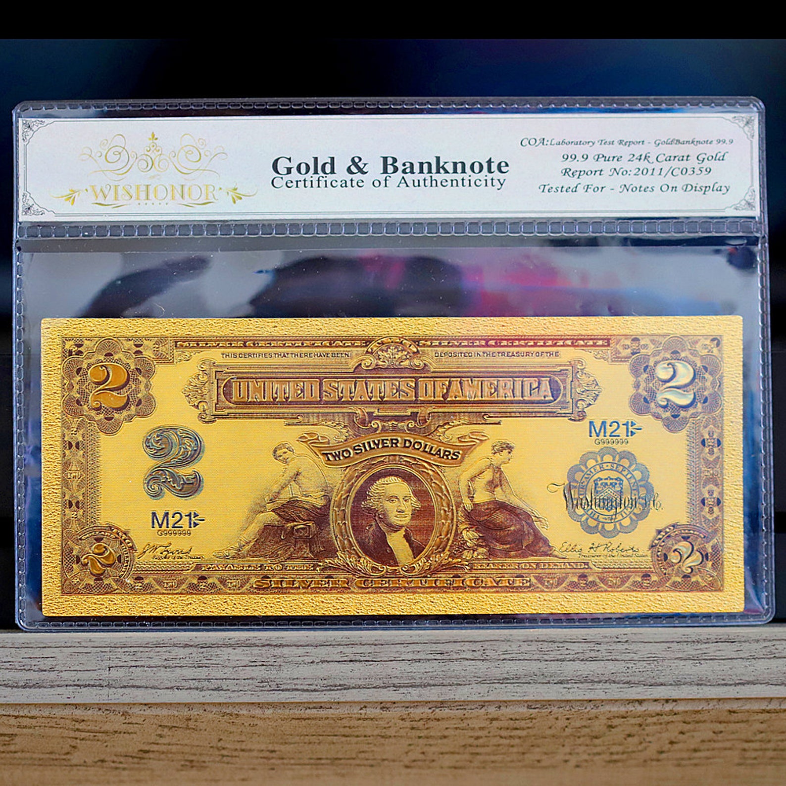 100mg 24K Gold 1899 2 Two Dollar Bill Silver Certificate Banknote With