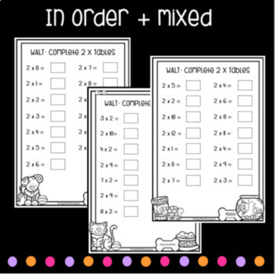 Times Tables Worksheets 2 3 4 5 6 7 8 9 10 11 and 12