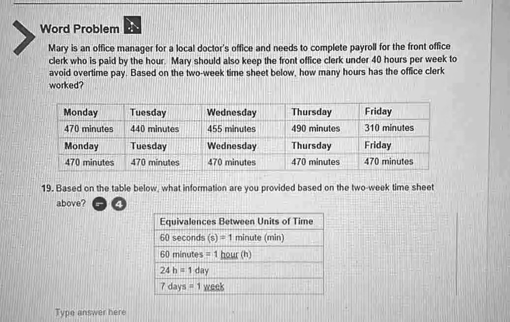 Word Problem Mary is an office manager for a local doctor #39 s office and