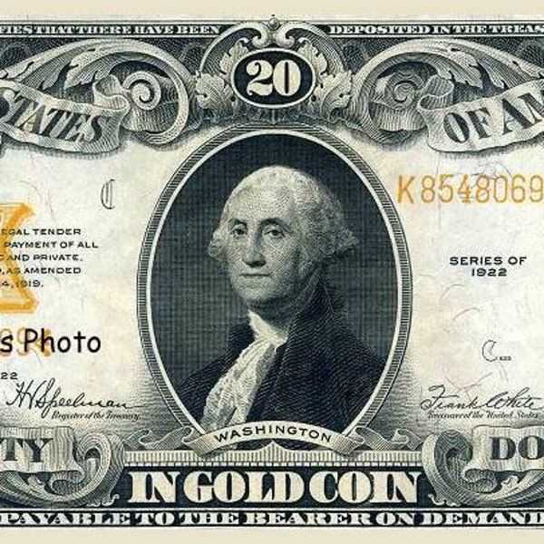 1922 US 20 Dollar Gold Certificate Note Currency Money George Etsy