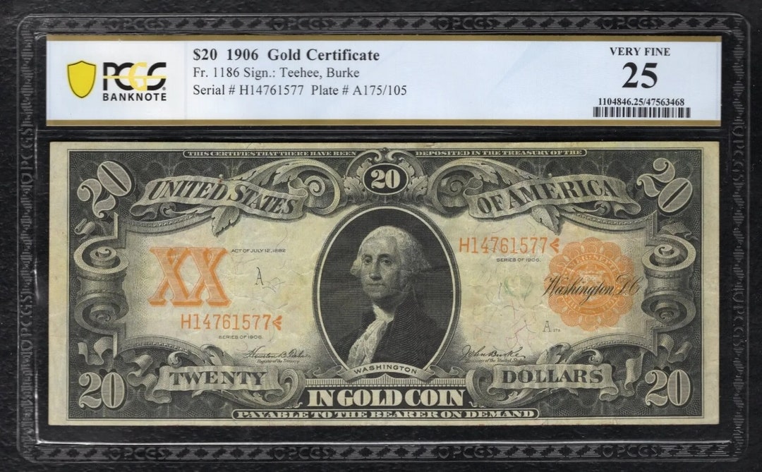 1906 20 Dollar Gold Certificate Value