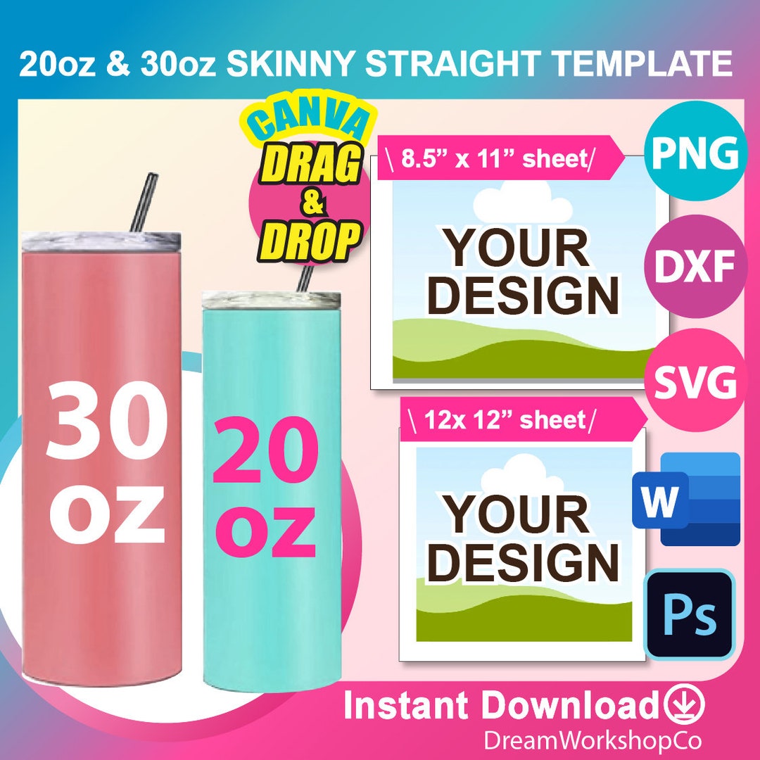 Skinny Tumbler Template: 20oz 30oz Straight Design (digital Download