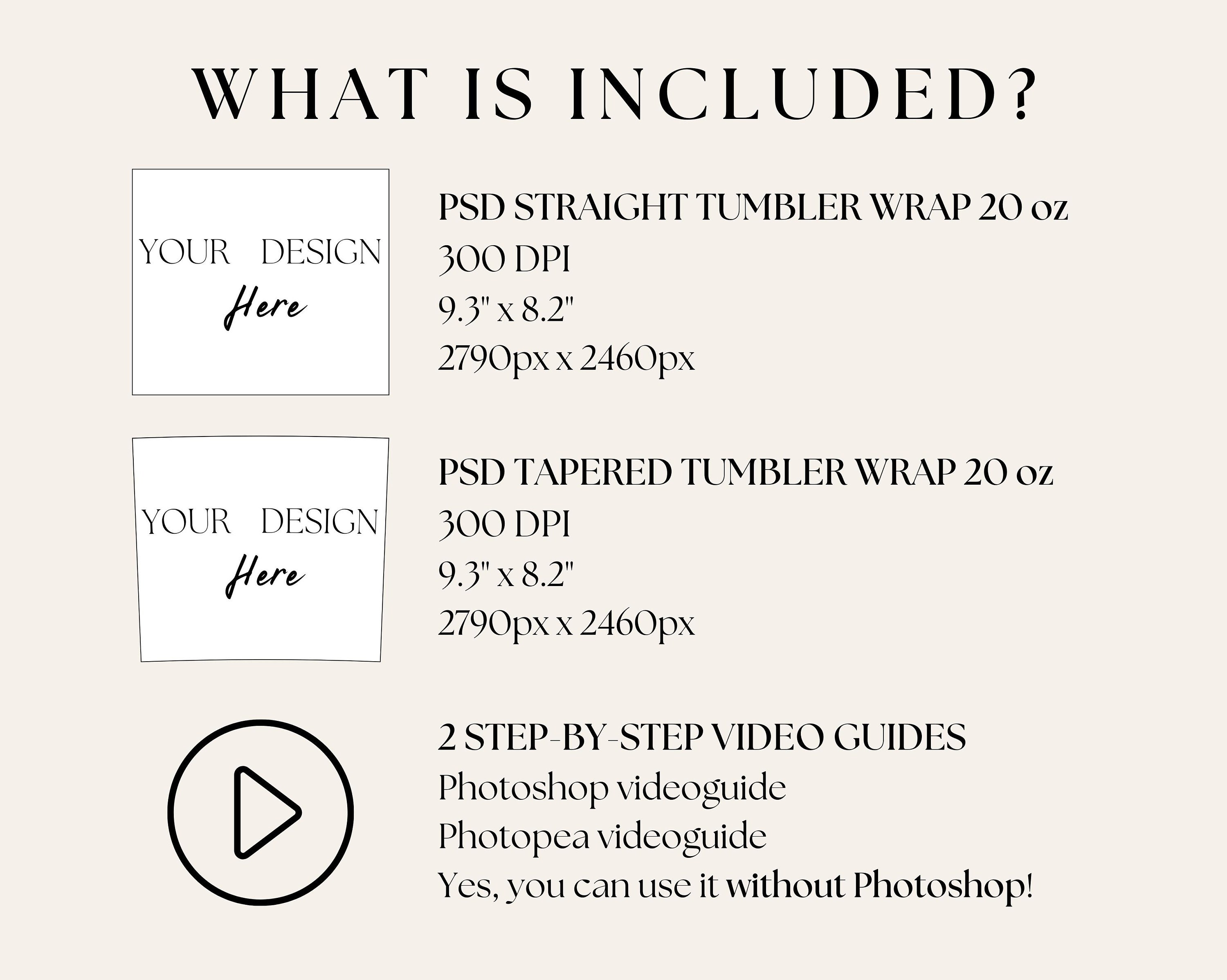 20oz Tapered Tumbler Wrap PSD Tumbler Wrap Template Tumbler Wrap