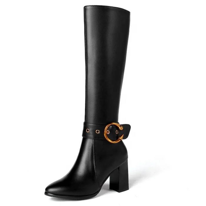 Autumn Winter Women High Boots Metal Buckle Zippers Booties Large Size