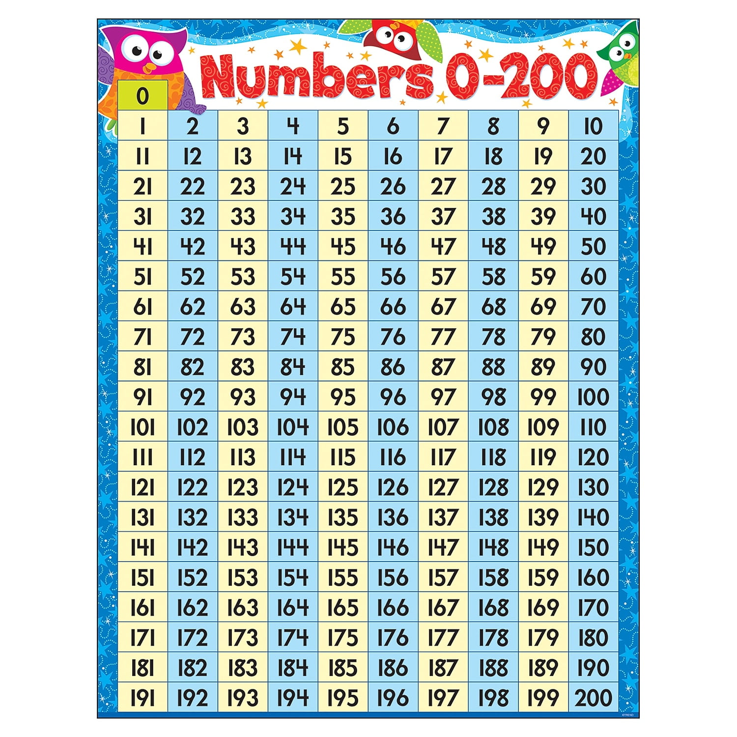 Trend Enterprises Numbers 0 200 Owl Stars Learning Chart Multicolor T