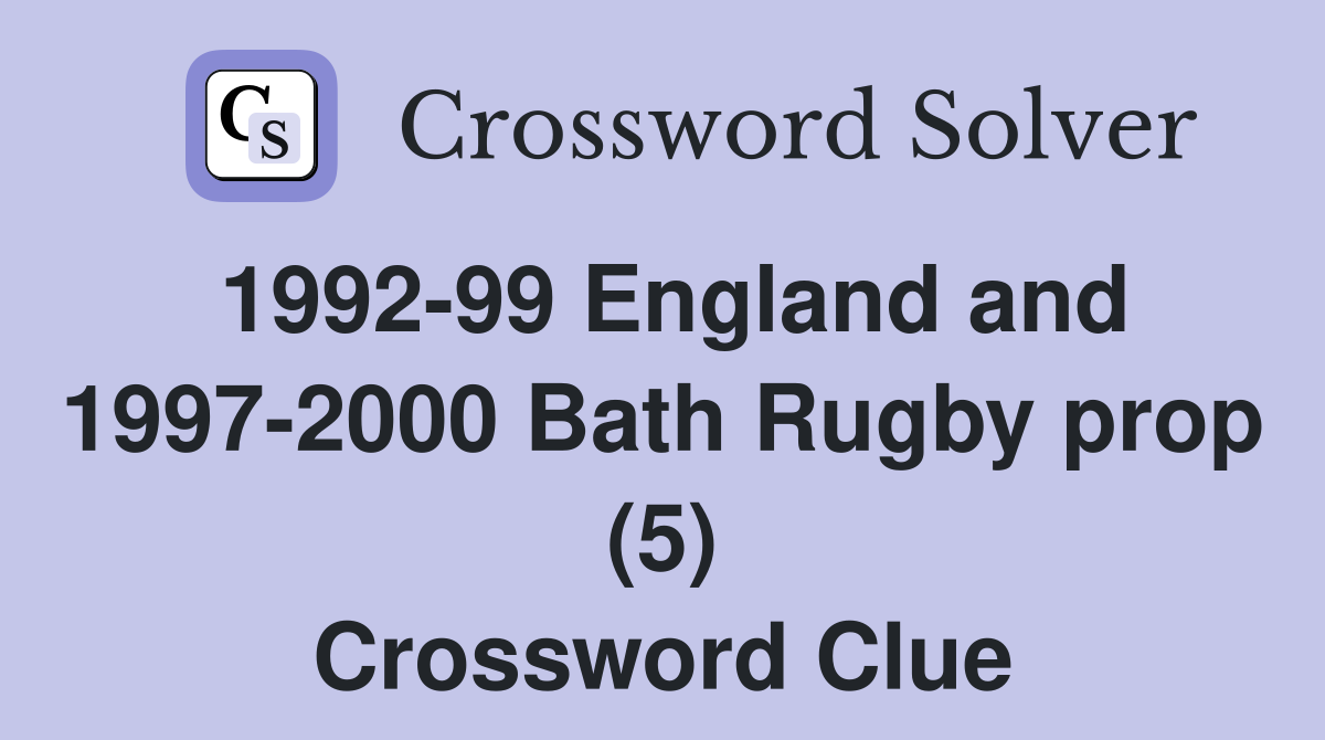 1992 99 England and 1997 2000 Bath Rugby prop (5) Crossword Clue