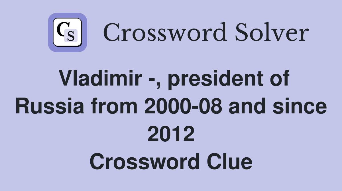 Vladimir president of Russia from 2000 08 and since 2012 Crossword