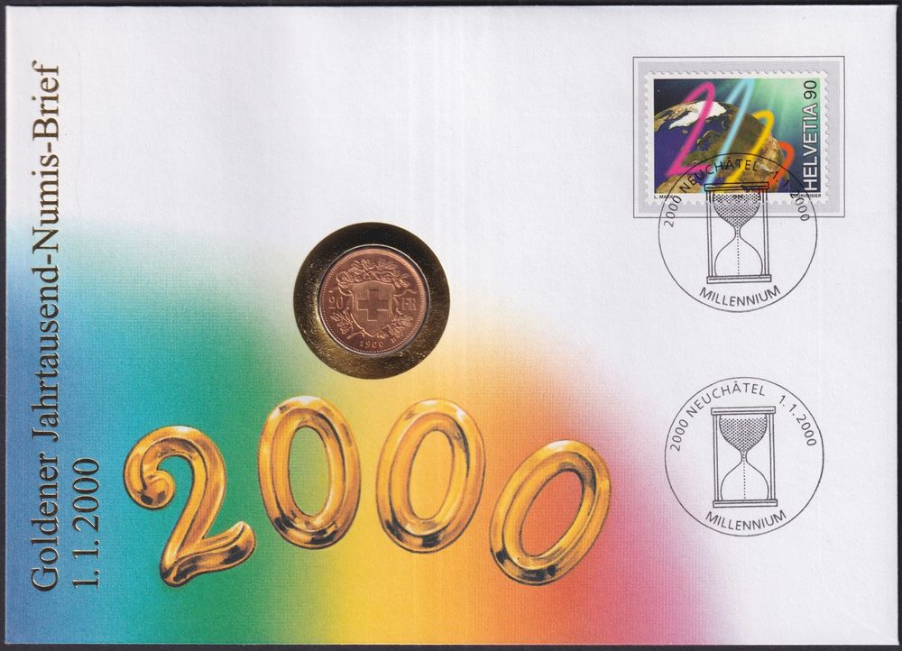 2000 1900 (Goldvreneli 20Fr) Jahrtausend Numis Brief RAR (Gebraucht