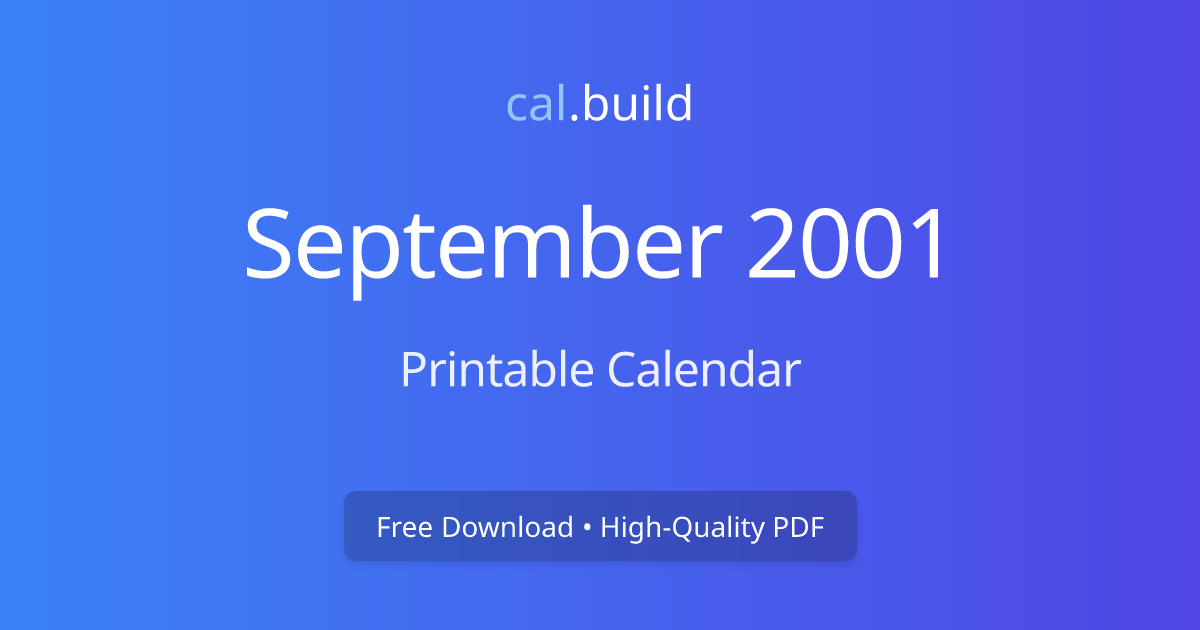 September 2001 Calendar Printable Free Download