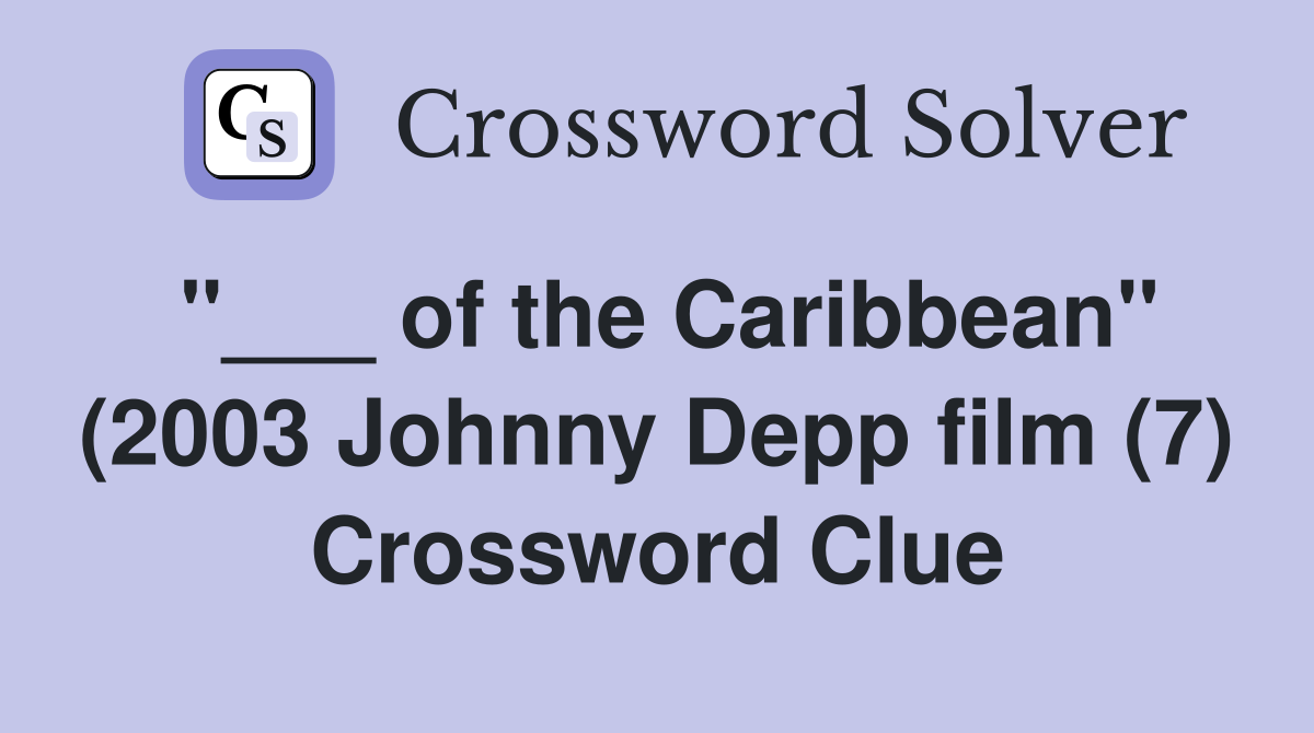 of the Caribbean quot (2003 Johnny Depp film (7) Crossword Clue Answers