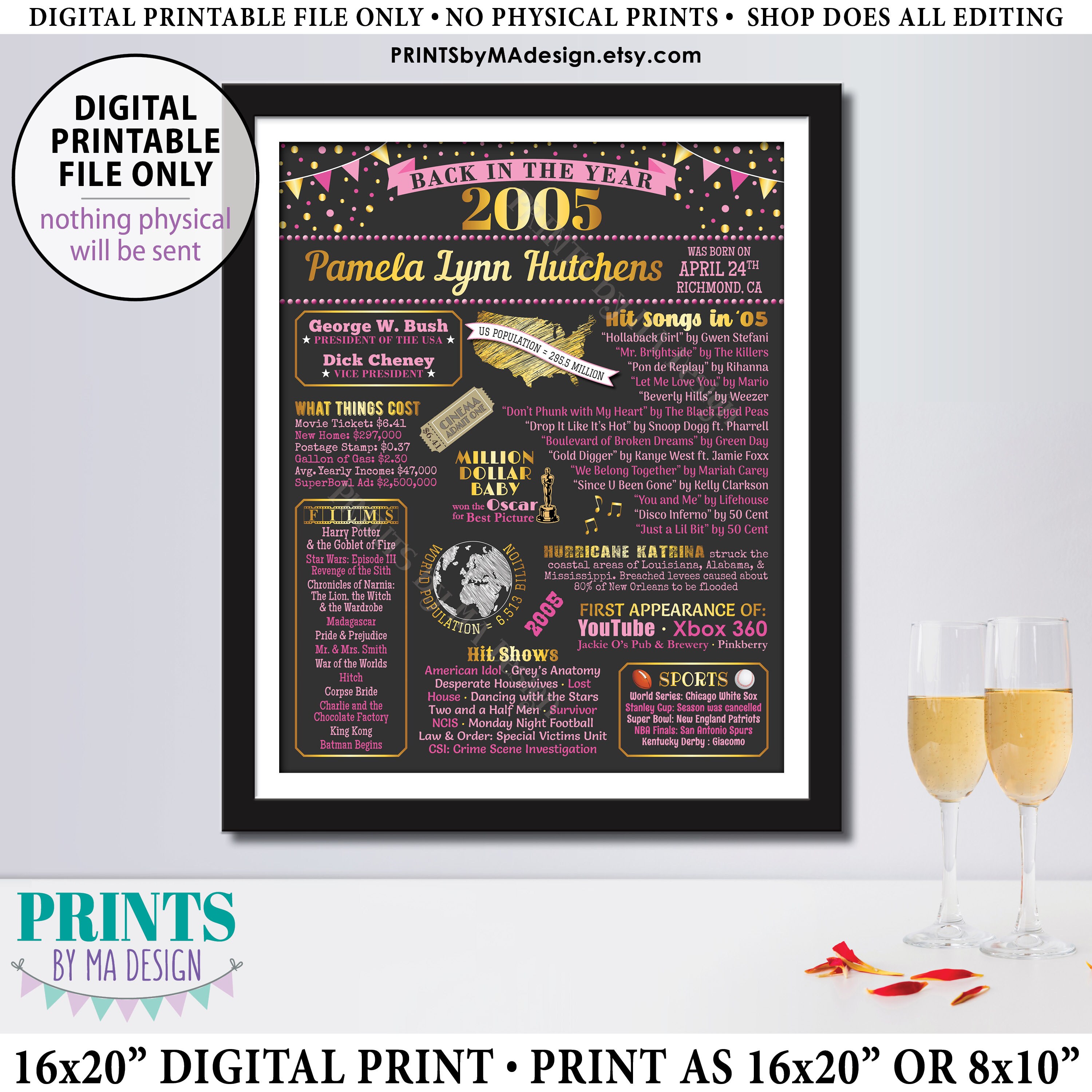 2005 Back in 2005 Fun Facts 2005 Trivia Birthday Sign 2005 16x20 8x10
