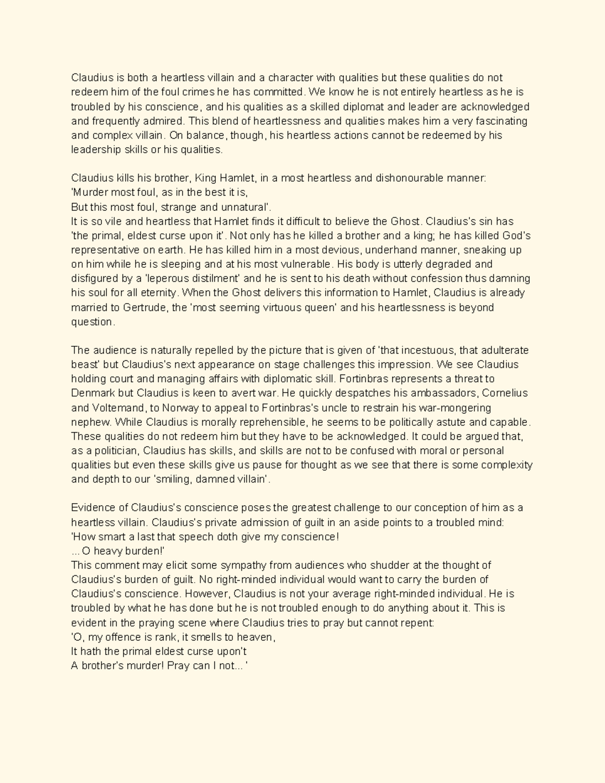 ENG 201: Claudius Complex Villainy and Leadership in Hamlet Studocu