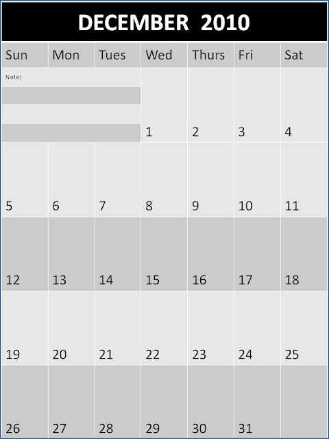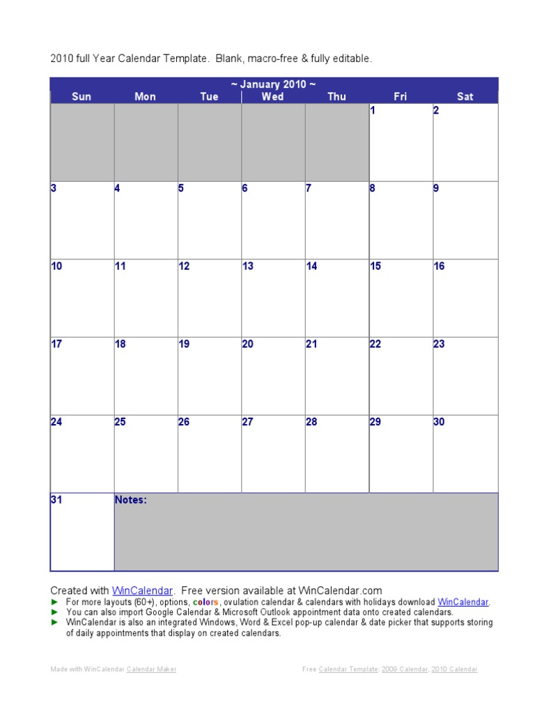 2010 Monthly Calendar Template
