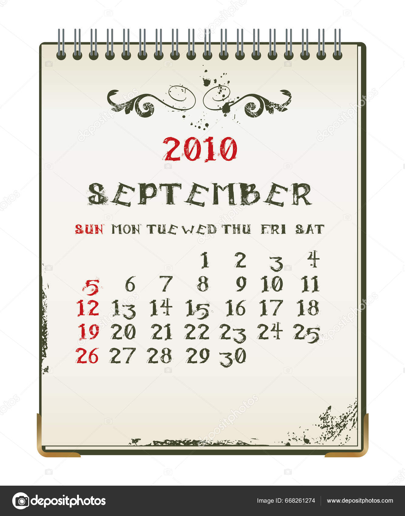 September 2010 Monthly Calendar Vector Illustration Stock Vector by