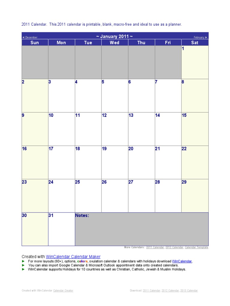 2011 Monthly Calendars for Activities • iWorkCommunity