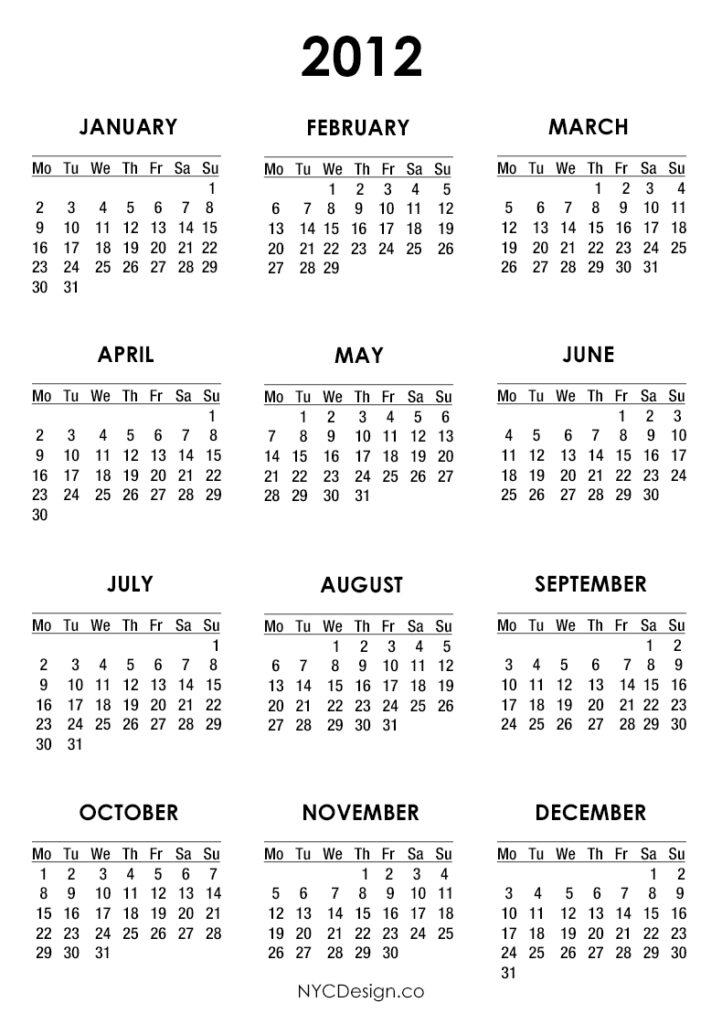 2012 Calendar PDF 10 free printable calendar templates for PDF