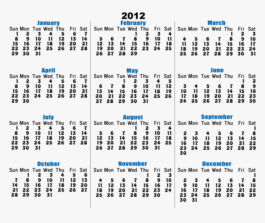 2012 Calendar Printable Free White Sunday Start NYCDesign co