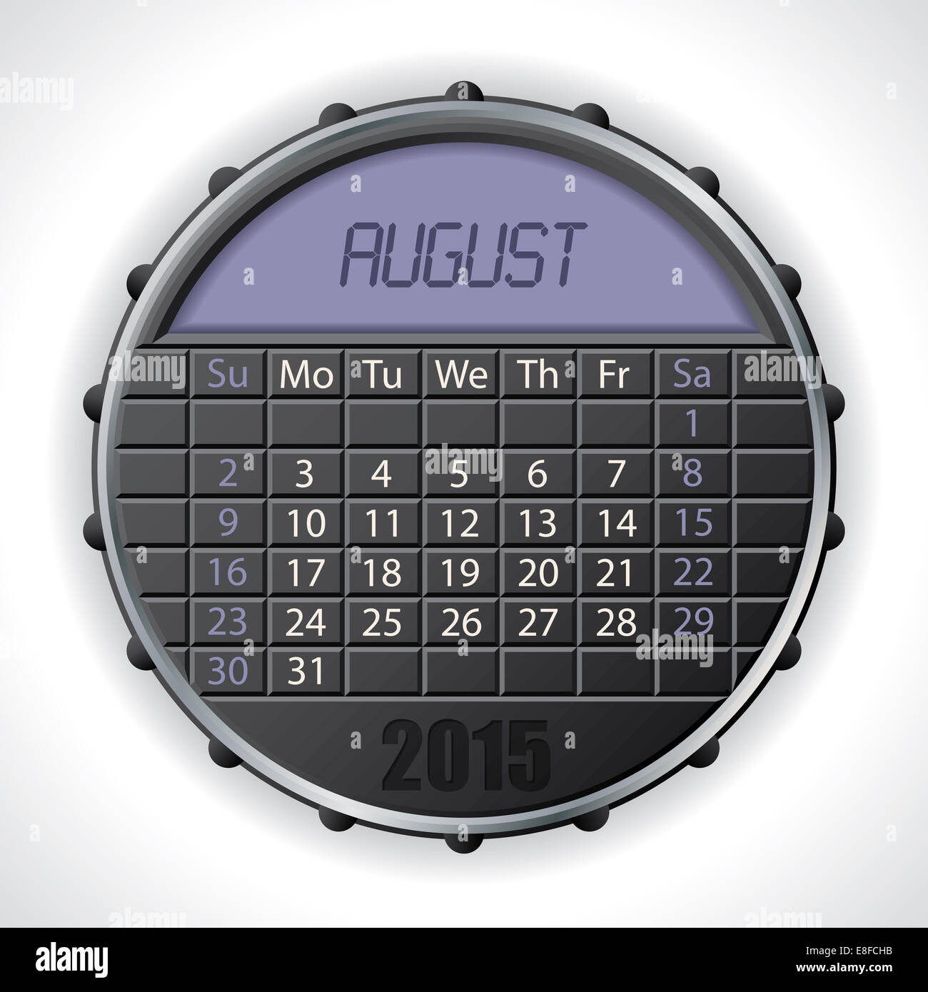 2015 august calendar design with color lcd display Stock Photo Alamy