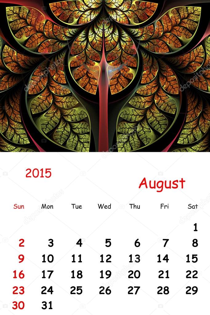 2015 August Calendar with beautiful fractal pattern Stock Photo