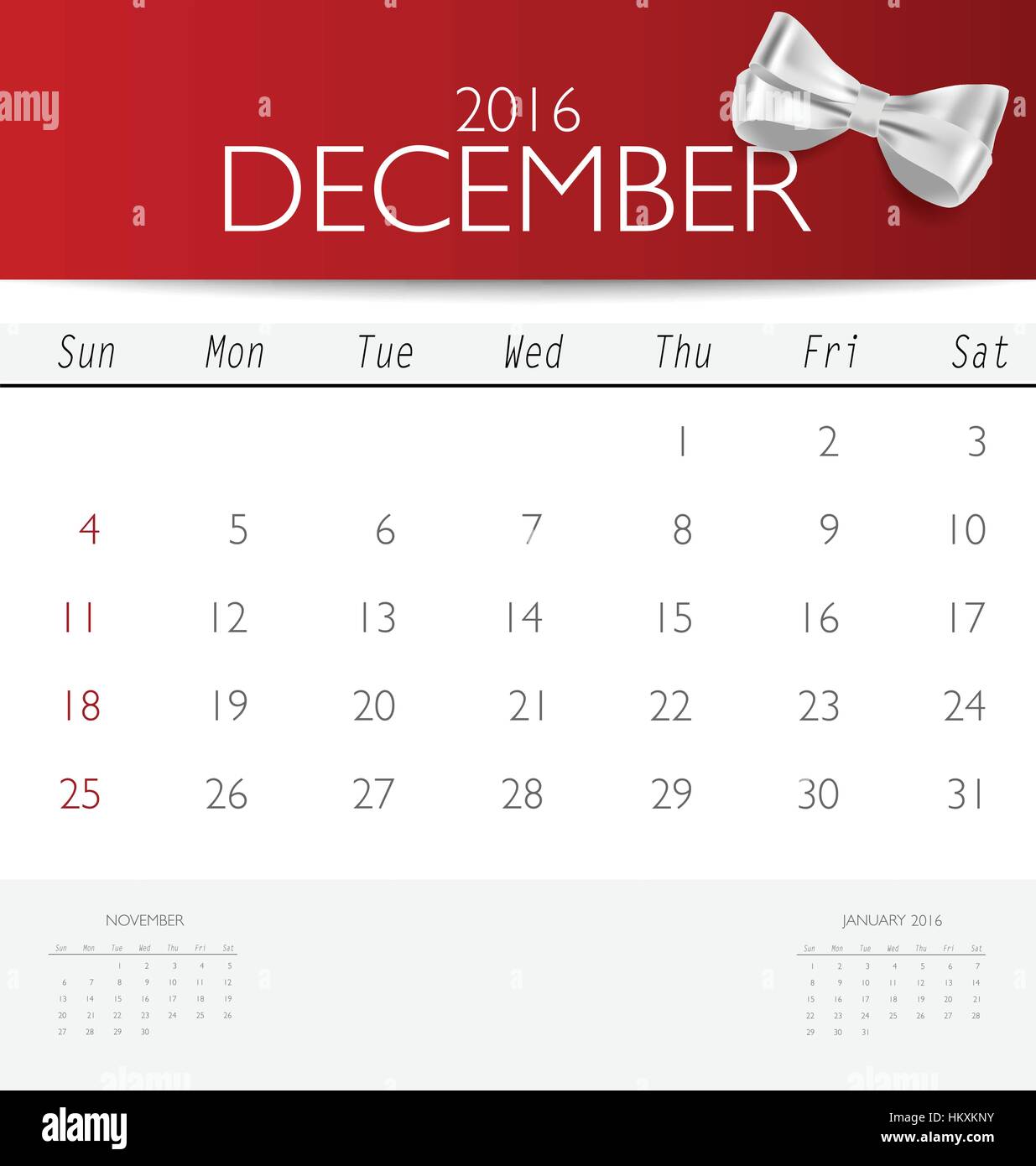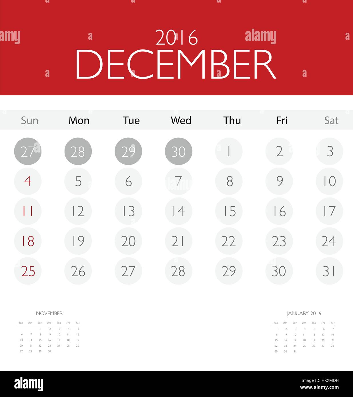 2016 Calendar Monthly Calendar Template For December Stock Illustration