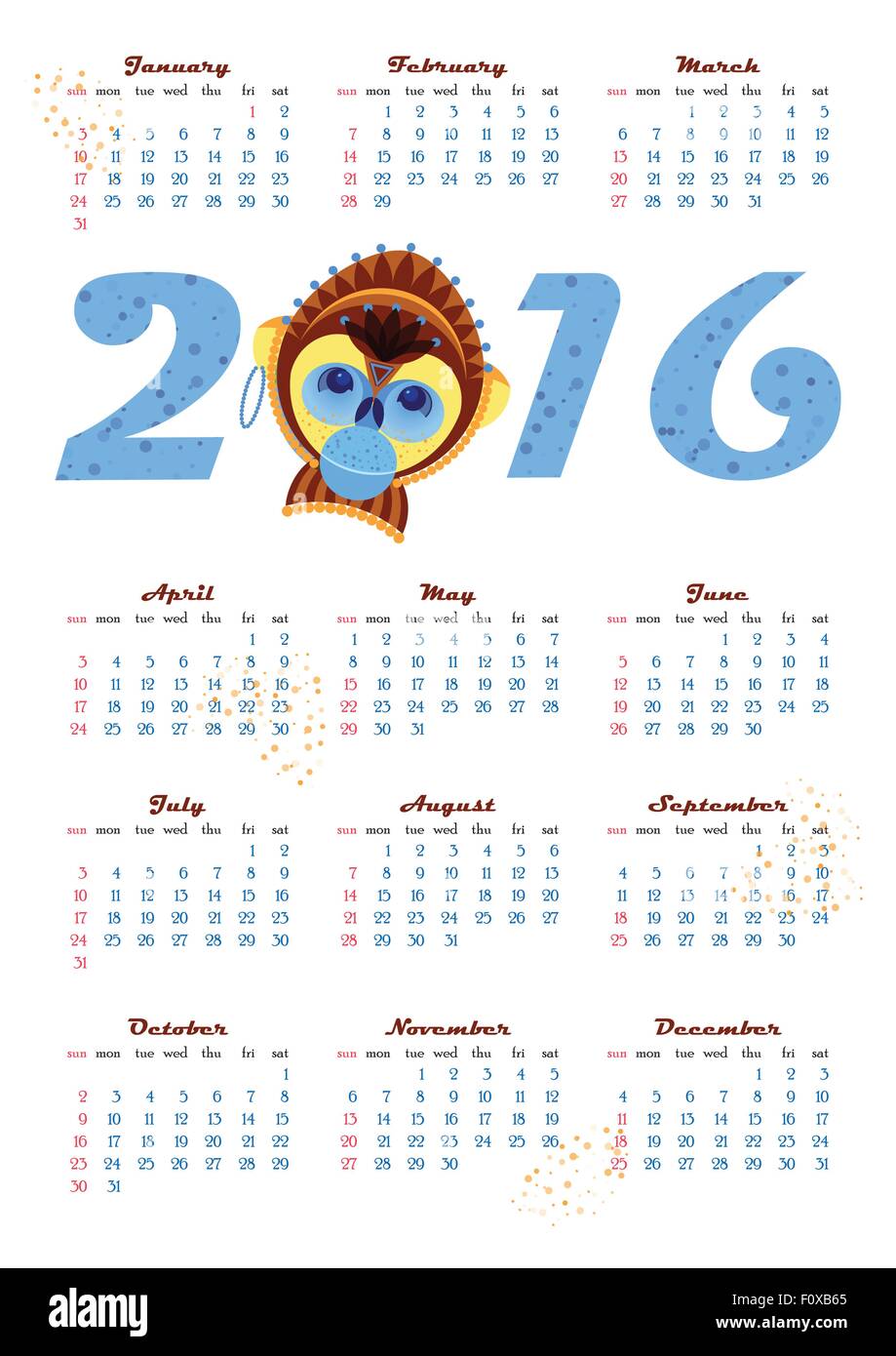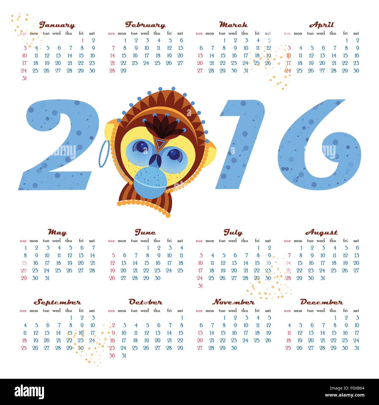 2016 calendar with picture monkey symbol of year Stock Vector Image