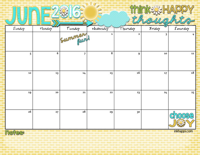June 2016 Calendar Let s have some summer fun inkhappi