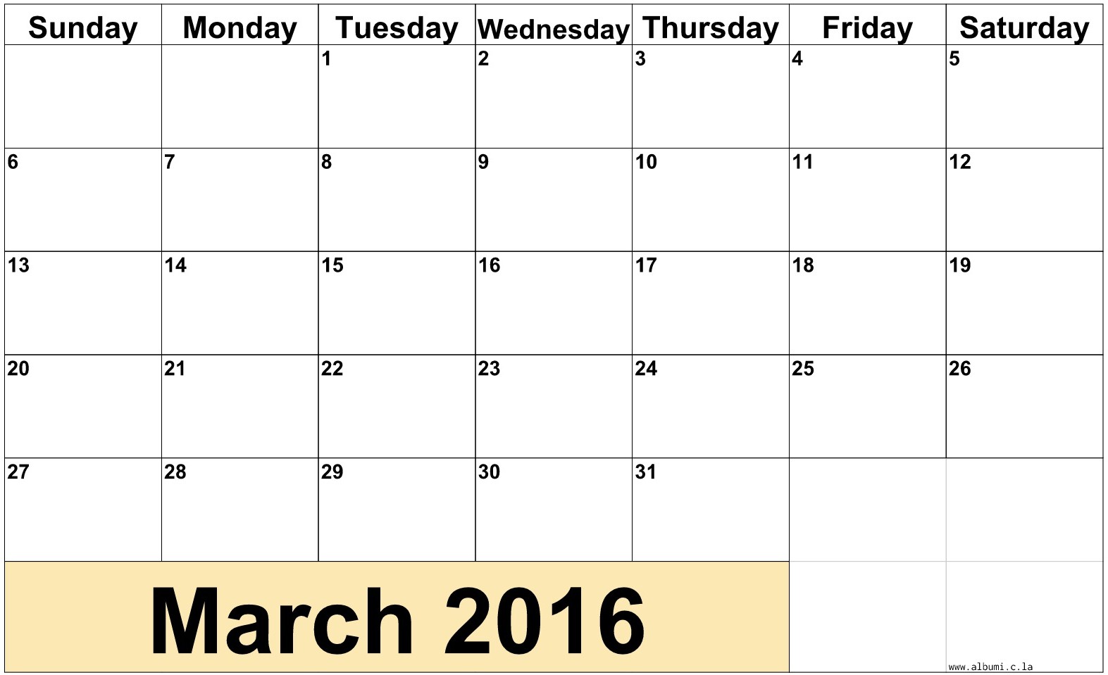 March 2016 Calendar Printable Free Download