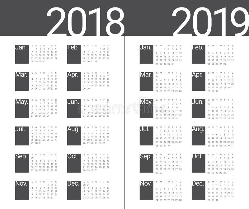 Kalender För 2018 Och 2019 Stock Illustrationer Bild: 51242903