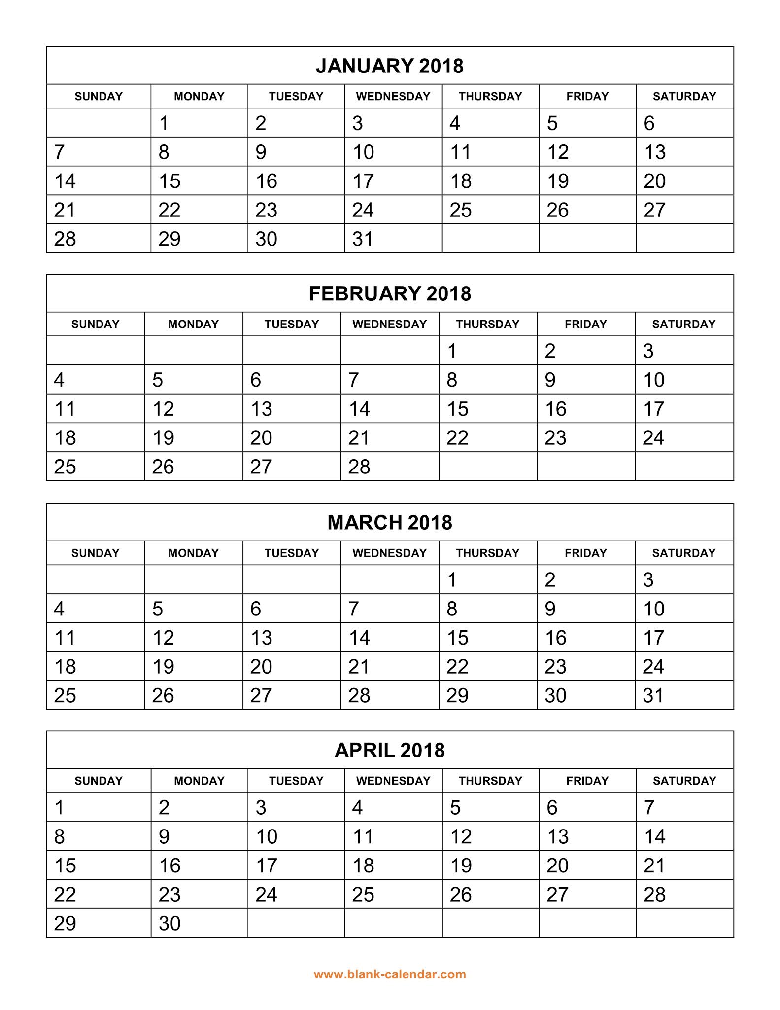 2018 Monthly Calendar Printable 2025 Four Month Calendars 31 FREE