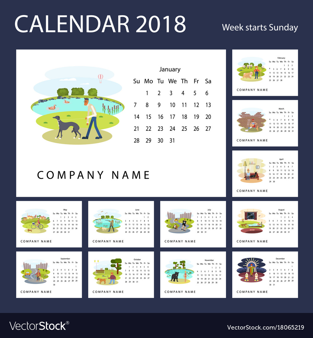 Yearly Wall Calendar Planner Template for 2018 Year Vector Design