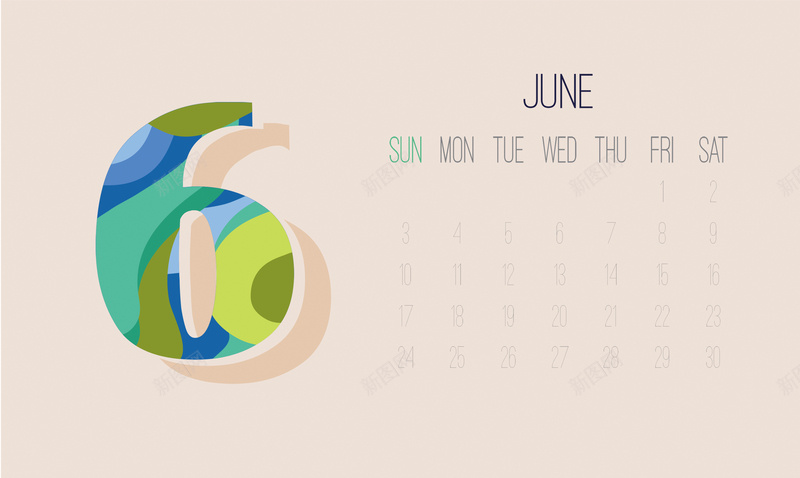2018年扁平化台历6月份背景图片免费下载 素材mszkukuwm 88ICON