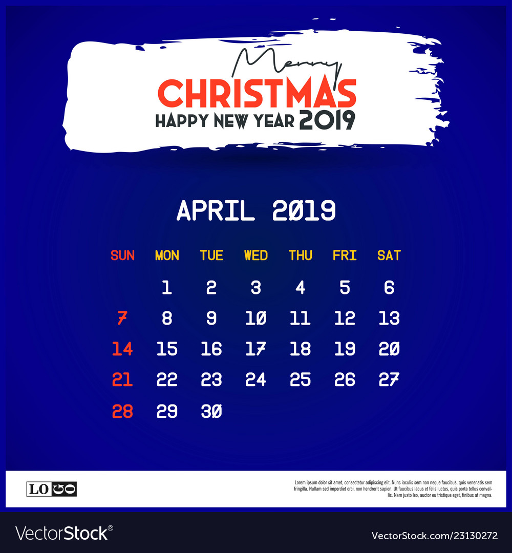 April 2019 Monthly Calendar Vector Illustration Stock Illustration