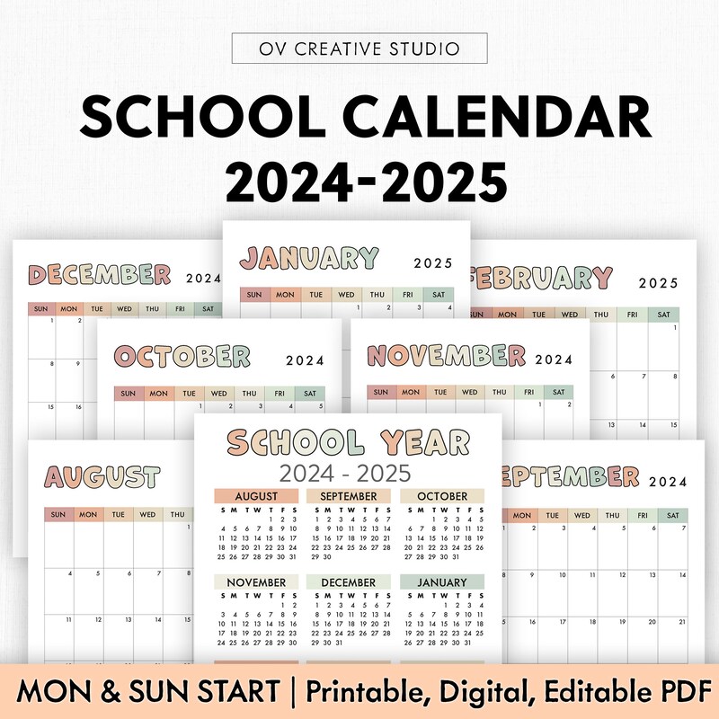 Academic yearly 2024 25 calendar digital download august 2024 to july