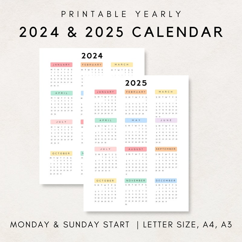 Yearly calendar 2024 25 Etsy de