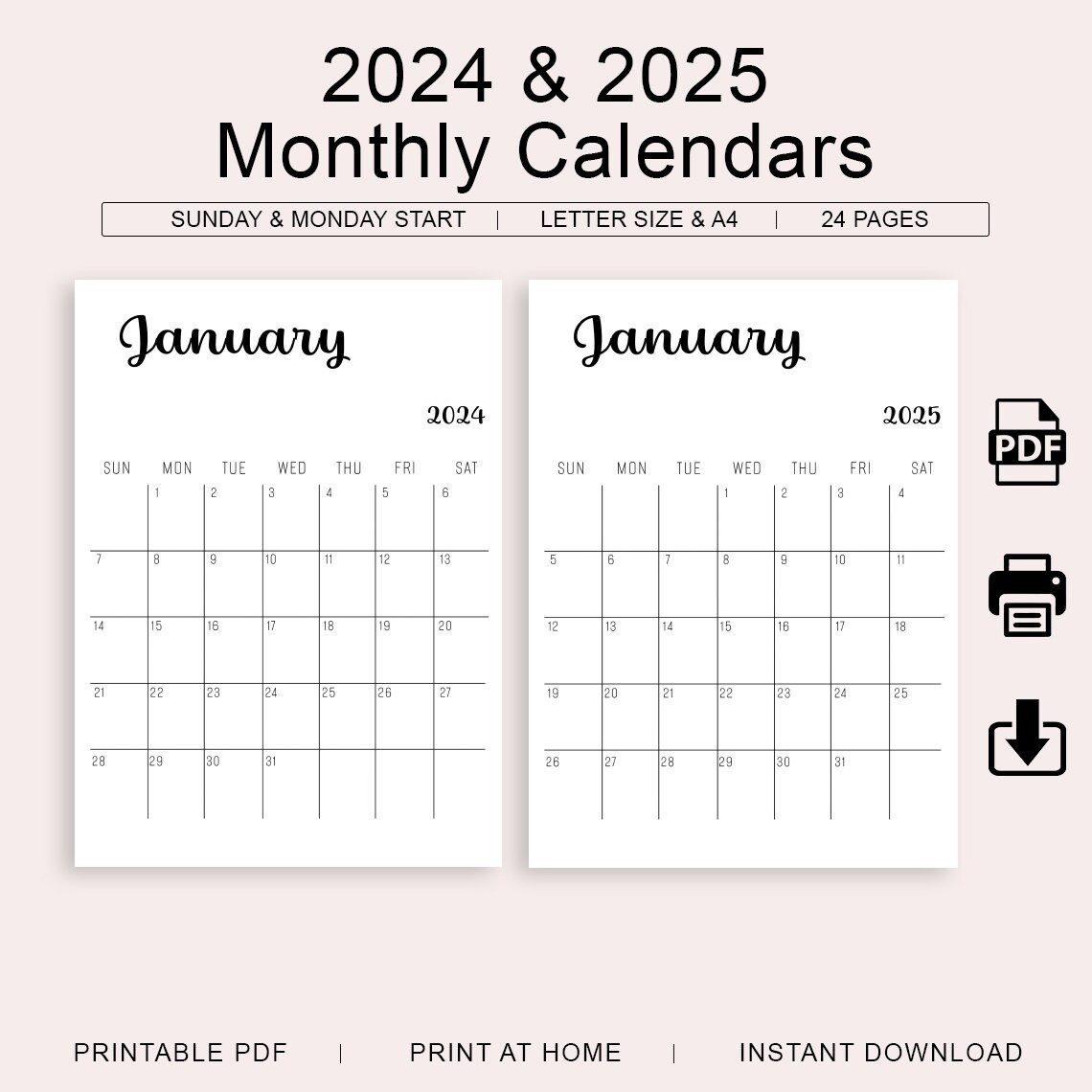 Fillable calendar 2024 and 2025 Etsy de